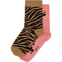 2-pack fine-knit socks in organic cotton. The socks have rib at the top, ensuring they stay in place all day. The pack includes a pair of light blue butterfly socks and a pair of red glitter socks with two hearts on the shaft.