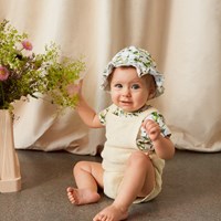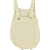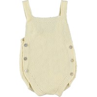 Fleur is a light yellow knit baby romper, with straps but without legs, in 100% cotton. The straps are fastened with buttons, and the sides also have easy button closures.
