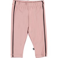Shawna is a pair of rose coloured baby leggings with a narrow black stripe on the side of the legs. The elastic waist and the soft fabric ensure a comfortable fit.