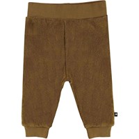 Stein is a pair of green brown trousers in velour. Wear them with the matching hoodies. The trousers have wide elastic at the waist and legs.