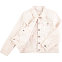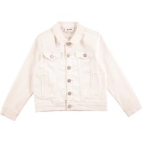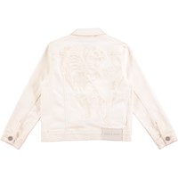 White denim jacket with buttons down the front and at the sleeve openings, chest pockets and a cool dragon emroidery on the back.