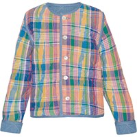 Henny is a quilted, reversible jacket in 100% cotton with mother of pearl buttons. On the outside, Henny is in blue cotton chambray with quilted pockets. The inside is a multi-coloured Madras plaid lining. Henny is 2 jackets in 1.