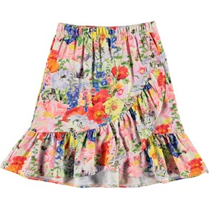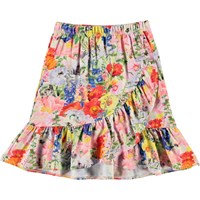 Bradie is a skirt in a wrap-around effect. It has the 'Hide and Seek' print that shows various animals hiding in the flowers.