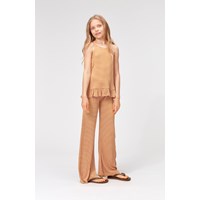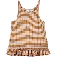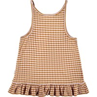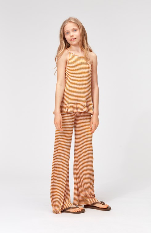 Riza is a striped strap top in rib with a small ruffle edge at the bottom.