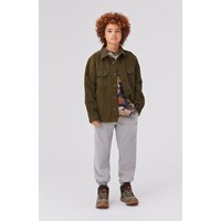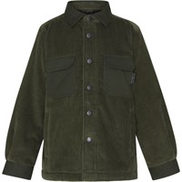 Henley is a dark green overshirt in velvet. You can wear the shirt alone or layer it as a jacket under another jacket. The shirt has two chest pockets and a front snap closure.