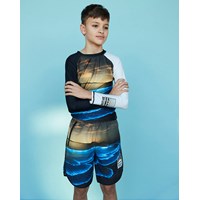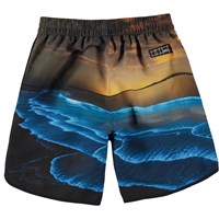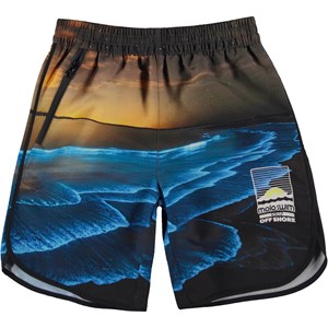 Nox is a pair of Molo’s new, extremely comfortable swim shorts with many lovely details. Nox is in a semi-long fit. It has a visible zipper and side seam slits for a relaxed look. This Nox is in an ocean print with a glowing sunset. Molo's swimwear has 50+ UV protection.