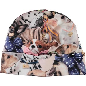 Soft, elastic hat in a double layer with a dog print. It can be used with or without roll up.