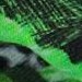 Green bib with a print of a jungle with hidden animals. The bib has a single snap closure at the neck.