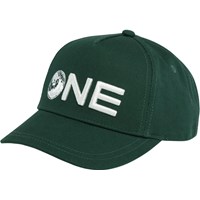 Sebastian is a dark green, classic cap with 'One' embroidered on the front, where the O is planet Earth. Goals is written in letters. The cap has a slightly curved visor and is adjustable at the back neck. Size guide: 3-5 years = 52 cm, 6-8 years = 54 cm, 9-14 years = 56 cm.