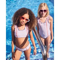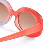 Oval sunglasses in red and light purple with tinted lenses, satin finish, and 100% UV protection. Suitable for ages 7 to 16.