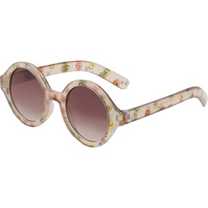 Rose coloured, transparent sunglasses in a round shape and with a smiley face print. Molo's sunglasses have 100% UV protection. Sizes 7-16 years.