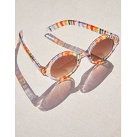 Round sunglasses in rainbow stripes and with dark lenses. Molo's sunglasses have 100% UV-protection. Sizes 7-16 years.