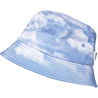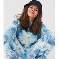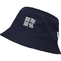Bucket hat in dark blue with an embroidery of the four elements. It has a wide brim.