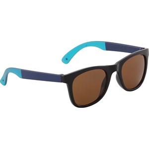 Dark blue sunglasses with turquoise details and dark lenses. Molo's sunglasses have 100% UV protection.