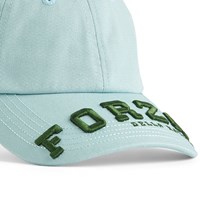 Classic cap in light blue with the text 'Forza Della Natura' in green embroidery. The cap has a slightly curved brim and is adjustable at the back. Recommended size guide: S/M = 53cm, M/L = 56cm.