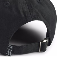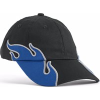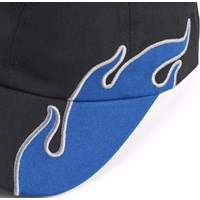 Black cotton cap. The cap has a cool flame motif with embroidery and a slightly curved brim. It can be adjusted at the back.
