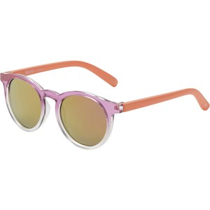 Rose coloured, round sunglasses with orange stems. Molo's sunglasses have 100% UV protection.