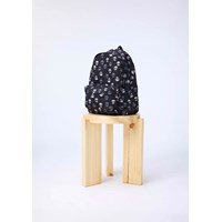 Black backpack with a print of grey aliens. The backpack has plenty of storage space, including a padded pocket that protects your computer or tablet. It features a zippered front pocket, bottle pockets on both sides, and padded back and shoulder straps. Additionally, it has an adjustable chest strap that helps evenly distribute the weight The backpack measures 30 x 17 x 42 cm and has a volume of 21L.