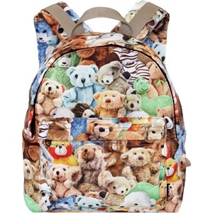 Multicoloured backpack with a print of teddy bears. Ideal for adventurous children aged 3-6 years. Large storage compartment and zippered front pocket. Padded back and shoulder straps and adjustable chest straps for extra comfort. Thanks to the adjustable straps, it is perfect as a preschool bag and can be used up to the first day of school. Dimensions: 26 x 10 x 30 cm. Volume: 6.5L.