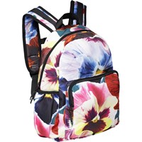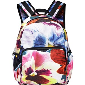 Roomy rucksack with a large floral print. It is constructed in recycled polyester. The rucksack has an exterior front pocket with a zip closure, side pockets for, e.g., a water bottle, padded back, loop and adjustable straps. This Molo product is recycled and constructed in reusable polyester, which is made of used plastic bottles and other waste. The production of reusable polyester requires fewer resources and produces less CO2, making Molo’s recycled rucksack the sustainable choice. The rucksack measures 25 cm wide and 30 cm tall.