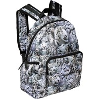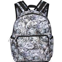 Roomy rucksack with a print of snow leopards. It is constructed in recycled polyester. The rucksack has an exterior front pocket with a zip closure, side pockets for, e.g., a water bottle, padded back, loop and adjustable straps. This Molo product is recycled and constructed in reusable polyester, which is made of used plastic bottles and other waste. The production of reusable polyester requires fewer resources and produces less CO2, making Molo’s recycled rucksack the sustainable choice. The rucksack measures 25 cm wide and 30 cm tall.