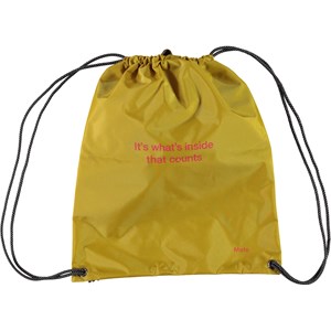 Yellow gym bag with the text 'It's what's inside that counts'.