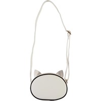 White crossbody bag with a sweet tiger motif on the front. The bag has an adjustable shoulder strap.