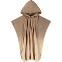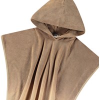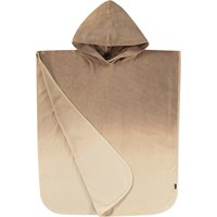 Brown shaded bath poncho in soft cotton terry. The poncho is knee-length and open at the sides, allowing for easy movement. It has a fixed hood with a large opening, making it easy to put on and take off. The terry dries quickly and is suitable for use by the water.