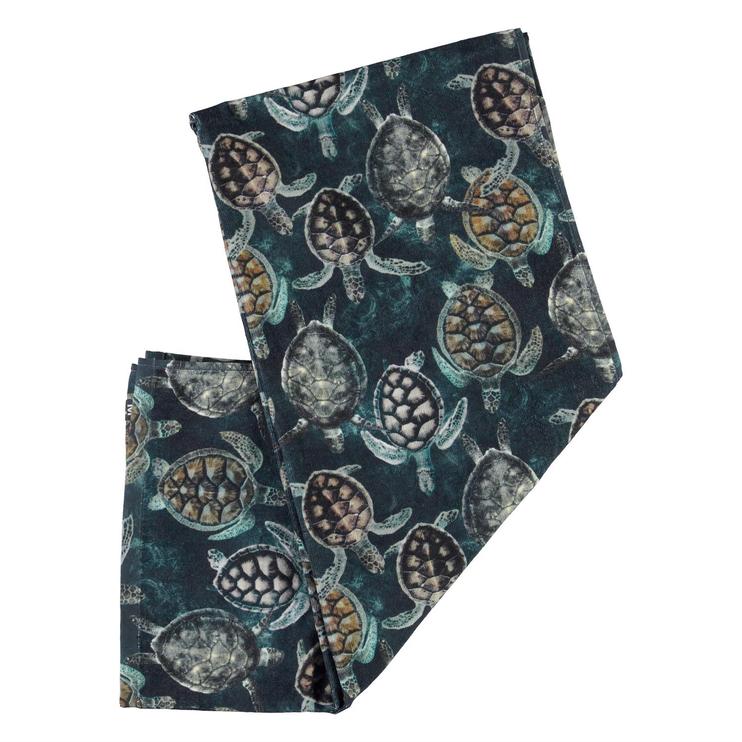 Lovely, soft beach towel in blue with a turtle print. Pair the towel with the matching swimwear for a perfect trip to the beach. The towel measures W: 75 cm by H:150 cm.