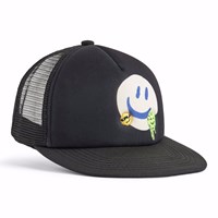 Black cap with a wide brim, mesh at the back for good ventilation, and an adjustable neck closure for a perfect fit. Ideal for trips to the beach and outdoor adventures. The cap has a colourful palm tree print on the front.