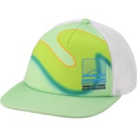 Cool cap in green and white with a print of a lime coloured wave. The cap has mesh on the back and is adjustable at the back.