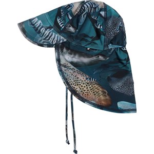 Sun hat with 50+ UV protection, a wide brim and longer at the back for protection from the sun. The sun hat has a fun print of sharks in animal prints.