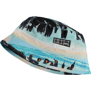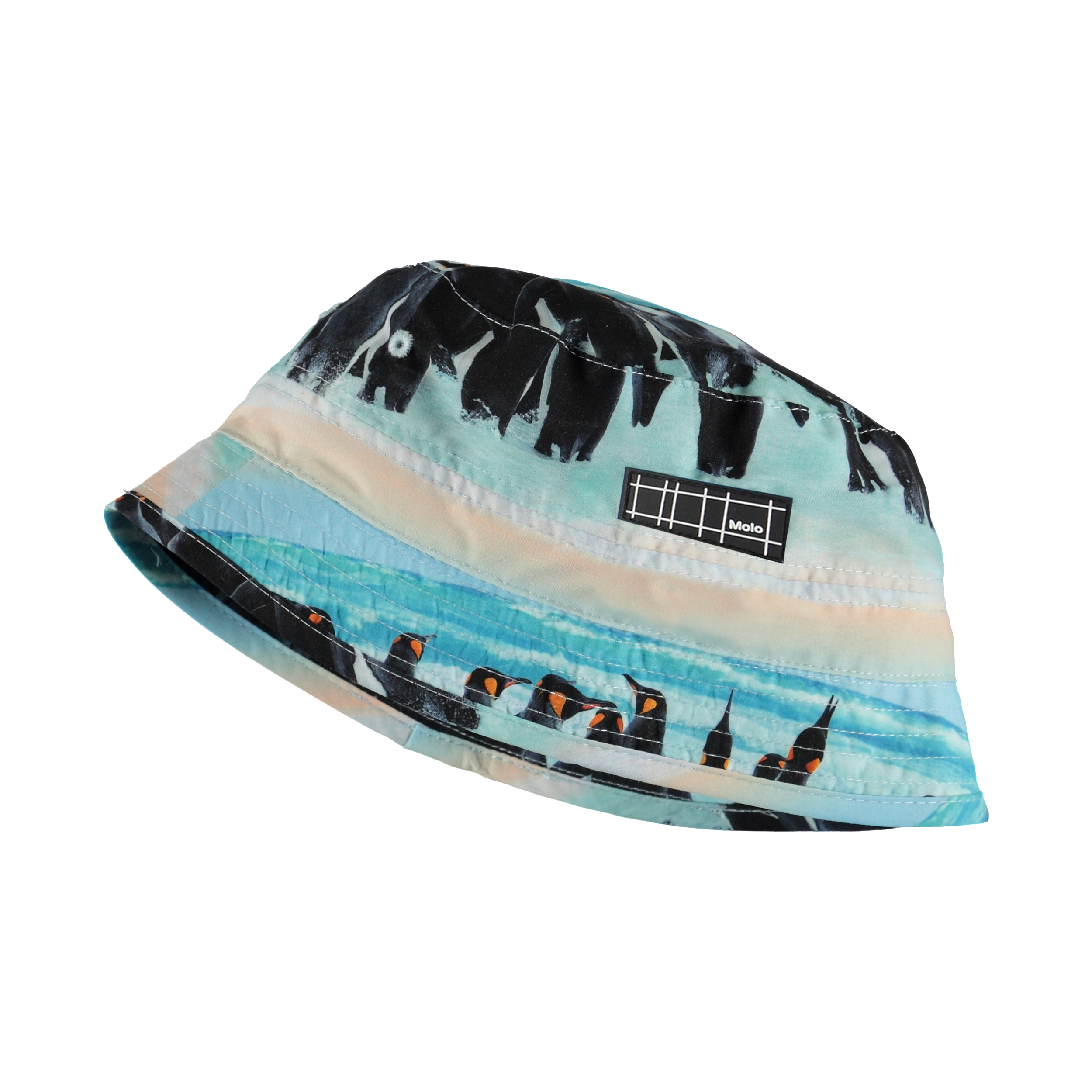 Bucket hat with a wide brim and 50+ UV protection. The hat is this summer's must-have accessory and livens up any outfit with Molo's 'Penguin Stripe' print.
