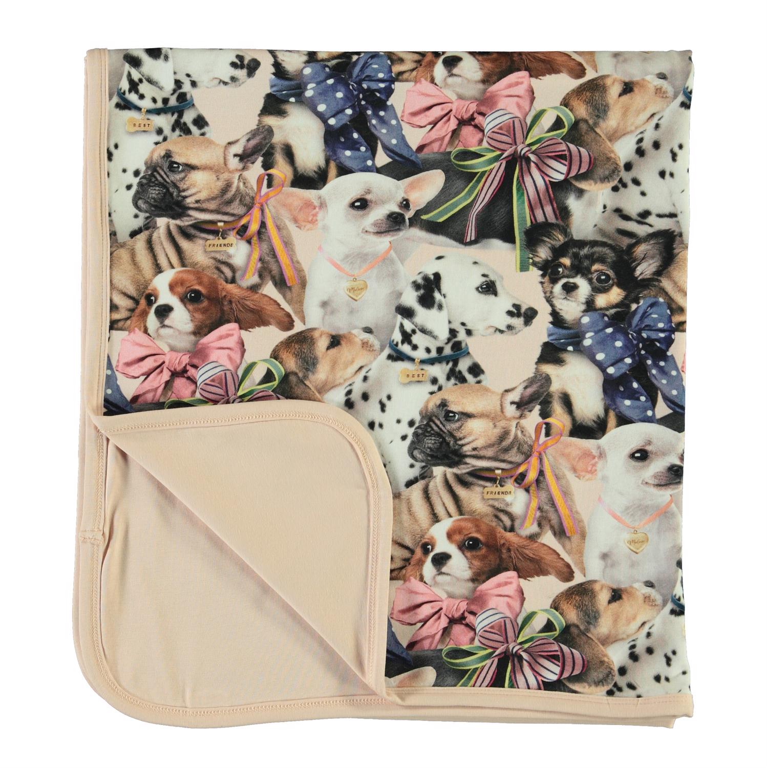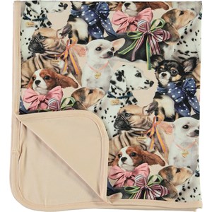 Soft, double layer cotton blanket with a dog print on one side and rose on the other side.
