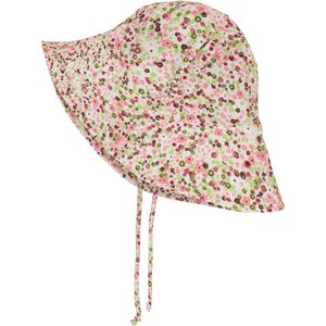 Sun hat with 50+ UV protection, a wide brim and longer on the back to best protect a child. The sun hat is in a small floral print.