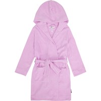 Dark green dressing gown made of super soft, organic cotton terry. The dressing gown has two pockets, a waist tie, and a hood.