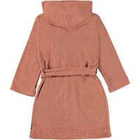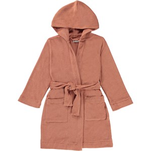 Wyn is a wonderfully soft bathrobe in a lightweight, tightly woven terry cloth in a rose colour. It has two pockets, ties at the waist and a hood to keep the head and neck warm.