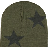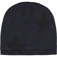 Grey knit hat in a soft wool blend with intarsia stars and a rib at the bottom.