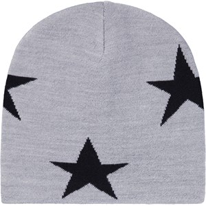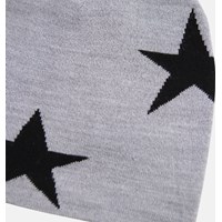 Grey knitted beanie with black stars. The beanie is made in a soft wool blend.