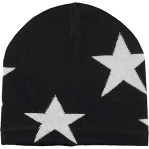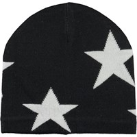 Soft, black mittens in a wool blend with intarsia stars.