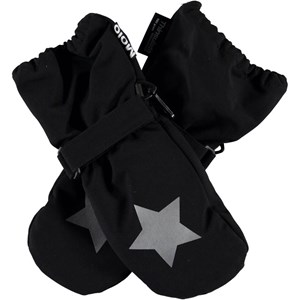 Waterproof and breathable black mittens with 3M Thinsulate insulation. The mittens have a star reflector on the front, as well as elastic and adjustable velcro at the wrist. Note that the shaft on this model is slightly longer than on the Mitzy, so that there is no opening at the jacket sleeve. This product has a water-repellent PFC-free impregnation (eg does not contain PFOS, PFOA and the like). Water column pressure: 10,000 mm. Breathability: 8,000 g / m2 / 24h. Note from size 1-2 years, the gloves have a zipper in the shaft instead of velcro.