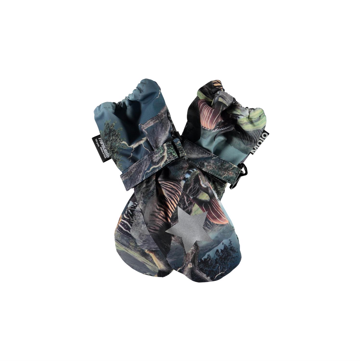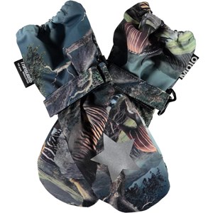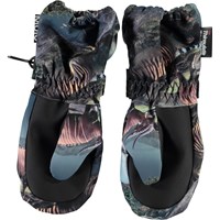 Waterproof and breathable mittens with animal print and 3M Thinsulate insulation. The mittens have a star reflector on the front, as well as elastic and adjustable velcro at the wrist. Note that the shaft on this model is slightly longer than on the Mitzy, so that there is no opening at the jacket sleeve. This product has a water-repellent PFC-free impregnation (eg does not contain PFOS, PFOA and the like). Water column pressure: 10,000 mm. Breathability: 8,000 g / m2 / 24h. Note from size 1-2 years, the gloves have a zipper in the shaft instead of velcro.