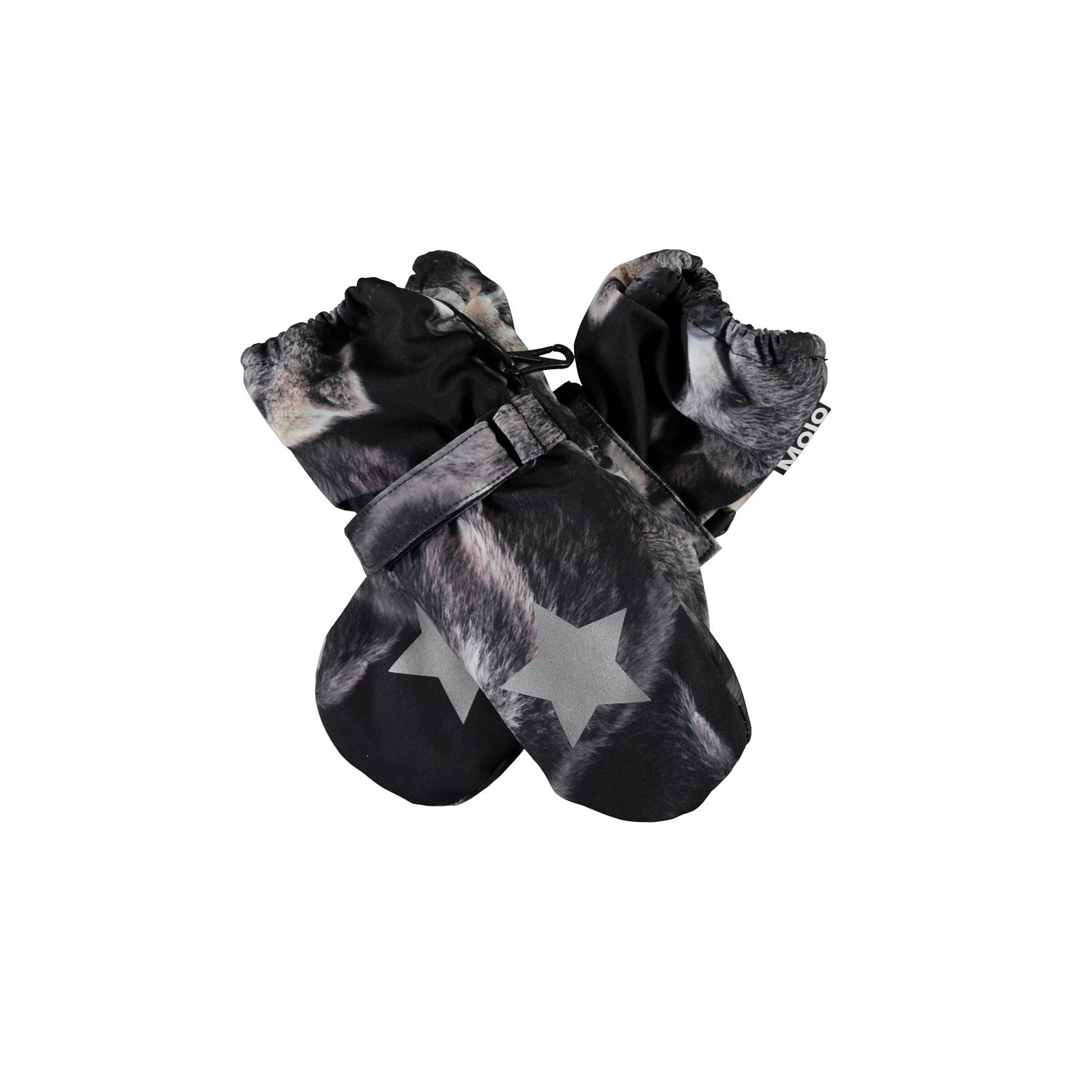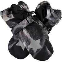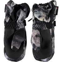 Waterproof and breathable mittens with bear print and 3M Thinsulate insulation. The mittens have a star reflector on the front, as well as elastic and adjustable velcro at the wrist. Note that the shaft on this model is slightly longer than on the Mitzy, so that there is no opening at the jacket sleeve. This product has a water-repellent PFC-free impregnation (eg does not contain PFOS, PFOA and the like). Water column pressure: 10,000 mm. Breathability: 8,000 g / m2 / 24h. Note from size 1-2 years, the gloves have a zipper in the shaft instead of velcro.