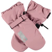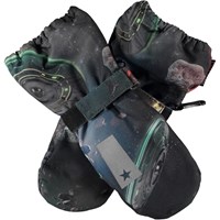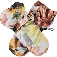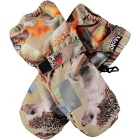 Green winter mittens with a dinosaur print. There is a black rubber coating on the inside of the palms and on the thumbs for easy gripping. The mittens are great for all kinds of weather and perfect for ski trips. The colours and prints of these mittens match Molo''s outerwear. On this model, the shaft is a bit longer than Mitzy, so there is no gap between the mittens and the jacket sleeves. Size 1-2 years has a zipper in the cuff instead of the Velcro strap.