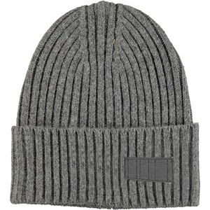 Dark grey, cable knit hat in a wool blend with a roll up and Molo''s logo on the front.