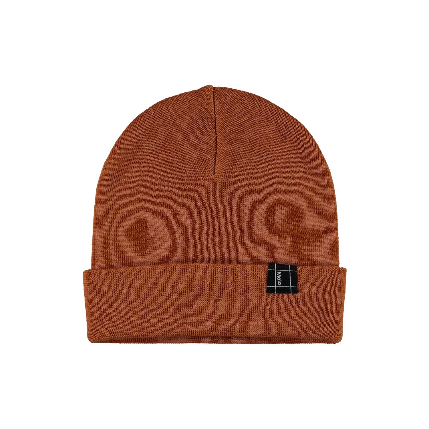 Brown hat with roll up in 100% merino wool.