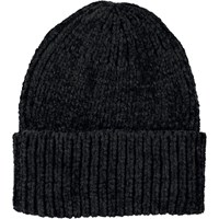 Black, fuzzy and soft hat in a gorgeous chenille knit with large roll up.