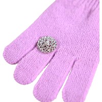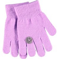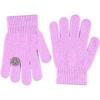 Pink knitted gloves with a ring on one finger. The gloves have a ribbed edge around the wrist that makes them comfortable to wear and prevents them from slipping off the hand.