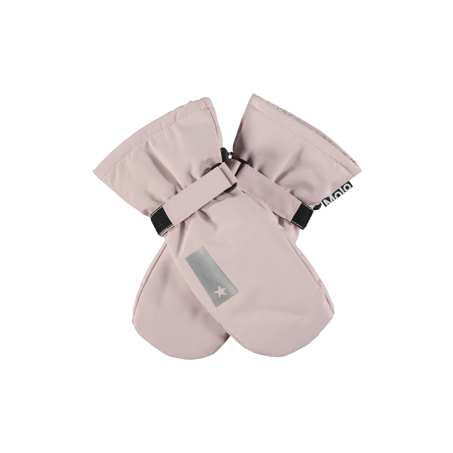 Rose coloured mittens for really cold days. There is a black rubber coating on the inside of the palms and on the thumbs for easy gripping. The mittens are great for all kinds of weather and perfect for ski trips. These mittens match the prints and colours of Molo’s outerwear.