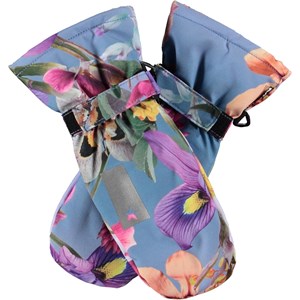 Multicoloured, waterproof and breathable mittens with floral print and 3M™ Thinsulate™ insulation. The mittens have a reflective strip on the front and elastic and adjustable Velcro at the wrist.  Features: Water-repellent PFC-free impregnation Water column pressure: 15,000 mm. Breathability: 15,000 g/m2/24h 3M™ Thinsulate™ insulation Please note, size 1-2 years has a zip in the cuff instead of Velcro closure.